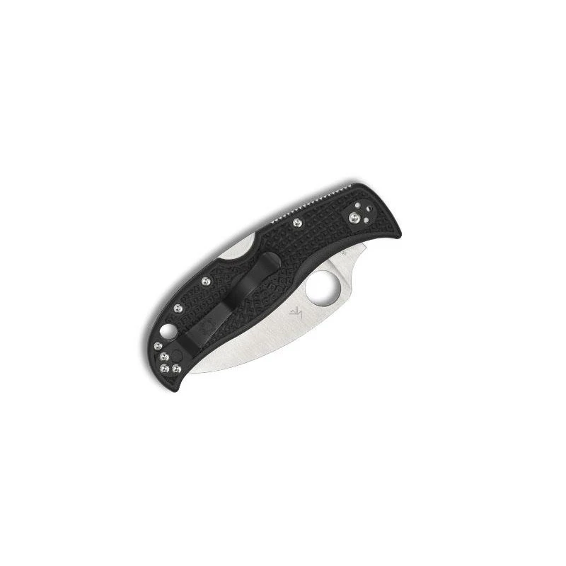 Ce couteau de poche possède un manche noir en FRN de 11cm de longueur. Il assure une aisance de port quotidienne, d’autant plus qu’un clip à 4 positions est présent, ainsi qu’un passe-lacet plus volumineux et donc plus facile à utiliser. La texture de la poignée est ergonomique, antidérapante, afin que la main ne vienne pas glisser en utilisation. Manche noir décoré par le motif Spyderco, le Rockjumper existe aussi en version lame au tranchant lisse.