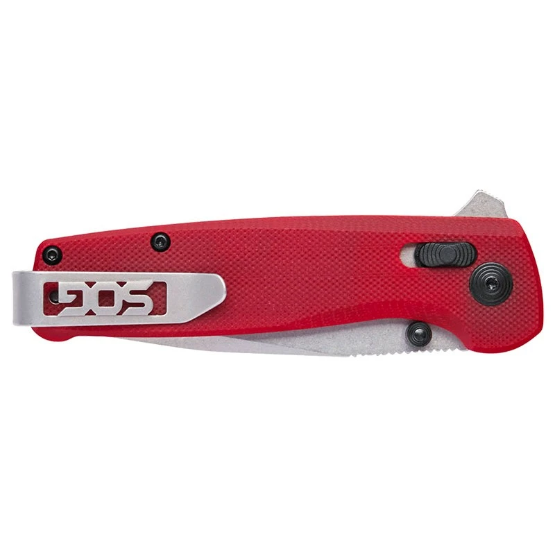 Le Terminus XR Crimson, par SOG, est parfait pour celles et ceux en quête d’un couteau EDC robuste. Il se dote ici d’un manche de couleur rouge en G10 assurant style et confort de prise en main. Au dos, il est équipé d’un clip de poche réversible ajouré où l’on observe le nom de la marque, à savoir SOG. C’est ainsi que le Terminus XR Crimson pourra vous accompagner partout sans la moindre difficulté !