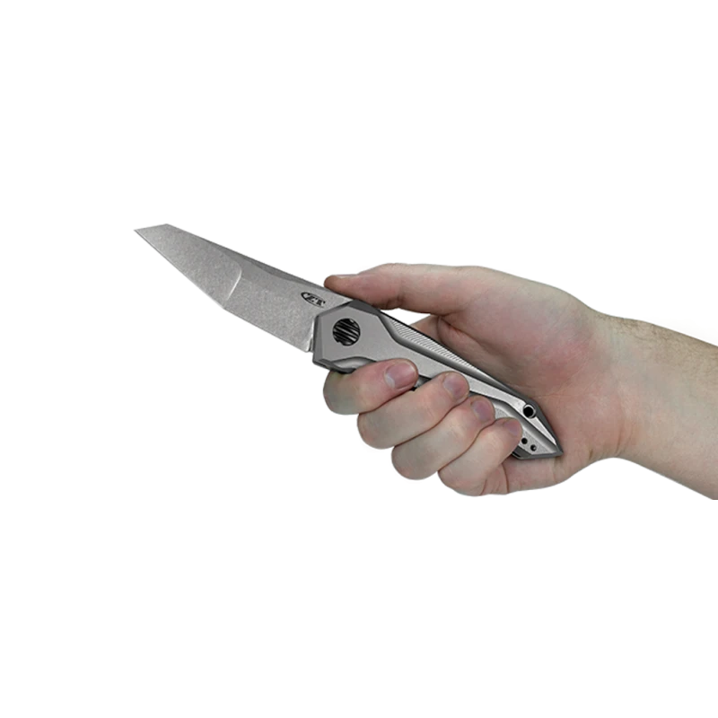 Le couteau Zero Tolerance 0055 GTC KVT TITANIUM est dĂ©corĂ© par des lignes aĂ©rodynamiques aussi bien sur la lame que sur le manche, c’est en quelque sorte son signe distinctif. En effet, ce couteau de poche ne ressemble Ă aucun autre : il possĂšde une lame en acier inoxydable S35VN de longueur 95mm qui assure un tranchant de qualitĂ© durable dans le temps. Les poignĂ©es sont elles conçues en titane usinĂ© en 3D. De plus, lorsque le couteau Zero Tolerance 0055 est en position fermĂ©e, le flipper est cachĂ©. Il suffira alors de tirer sur la languette pour que le ZT 0055 s’ouvre. La lame en acier S35VN glisse hors de la poignĂ©e sur le systĂšme de roulement Ă billes KVT de ZT. De plus, un clip en titane courbĂ© rĂ©versible est Ă©galement prĂ©sent pour faciliter le port du couteau en toutes circonstances.