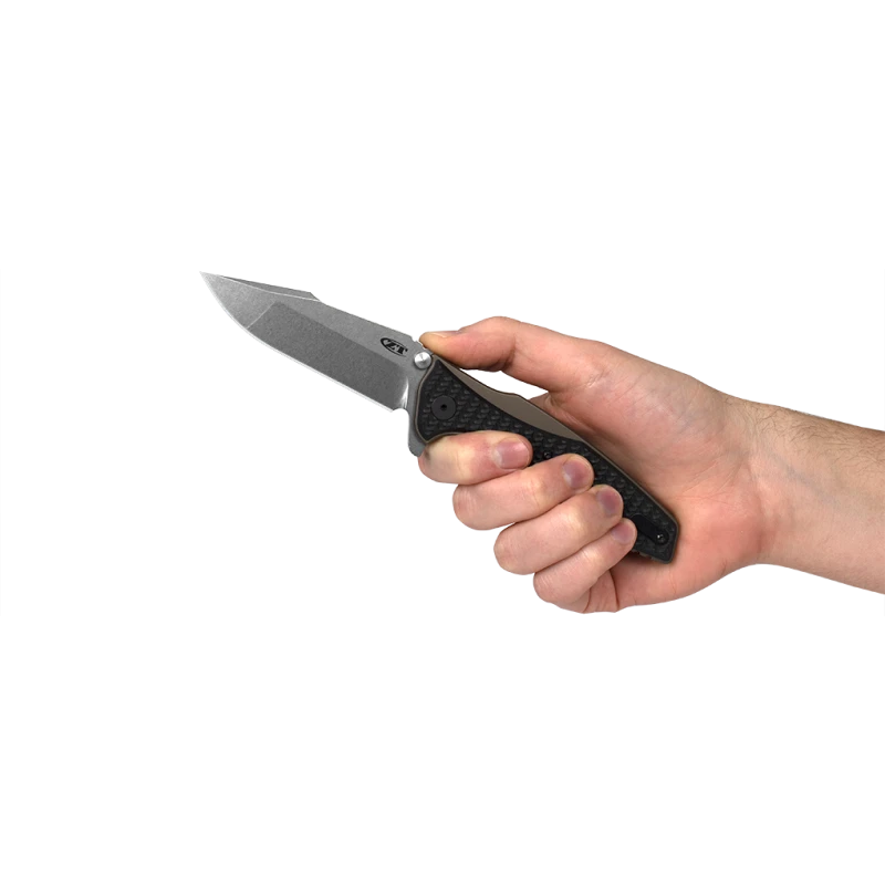 Le couteau Zero Tolerance 0393BRZ Sprint Run by Rick Hinderer adopte un look particulièrement agressif. En effet, il possède un manche conçu en titane anodisé dans un beau bronze avec un recouvrement en G10 noir permettant d’améliorer énormément la prise en main du couteau pliant. Le recouvrement en G10 apporte également une touche design non négligeable. Côté lame, le couteau Zero Tolerance 0393BRZ utilise l’acier inoxydable CPM 20CV, de quoi apporter du tranchant ainsi qu’une bonne dose de résistance, notamment face à la corrosion. Sachez également que le système de roulement à billes KVT est présent, il permet à la lame de s’ouvrir de façon douce et facile. D’ailleurs, cette même lame est marquée du logo ZT et peut être personnalisée par le texte de votre choix. Le Zero Tolerance Sprint Run 0393BRZ est une belle réussite : le clip réversible est idéal pour le transport.