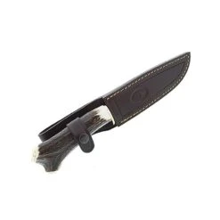 FabriquĂ©e en Espagne par la coutellerie Joker, cette dague (rĂ©fĂ©rence JK30CC) se rĂ©vĂ©lera ĂȘtre particuliĂšrement efficace pour la chasse. Le chasseur pourra notamment toujours compter sur une grande lame de 33cm conçue en acier molybdĂšne vanadium favorisant la soliditĂ© ainsi que la rĂ©sistance Ă la corrosion. La grandeur de la lame confĂšre une puissance de coupe idĂ©ale pour les activitĂ©s sportives comme la chasse. Le petit plus du site le-couteau.com, c’est de vous permettre de personnaliser la lame par procĂ©dĂ© gravure (texte au choix tel que le nom du chasseur par exemple). Une fois personnalisĂ©e, la dague Joker JK30CC se rĂ©vĂšle ĂȘtre le parfait cadeau Ă offrir Ă un ami chasseur. La lame est de profil spear point et de type fixe avec garde. Le manche lui, est lĂ©gĂšrement courbĂ© pour une prise en main plus confortable, et fabriquĂ© en bois de cerf naturel (longueur 125mm). Pratique, la dague de chasse Joker 30CC vous sera livrĂ©e avec son Ă©tui en cuir marquĂ© par le logo de la coutellerie Espagnole.