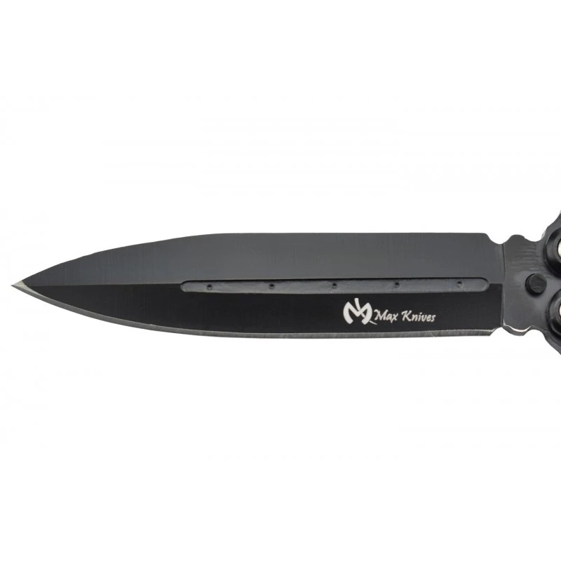En parfaite adéquation avec le style du manche, la lame du balisong Max Knives P38B est de couleur noire, toujours fabriquée en acier inoxydable pour la résistance à la corrosion et le tranchant de qualité. Comme trÚs souvent chez Max Knives, on retrouve le logo inscrit sur la lame, ici dans une écriture proche du blanc afin que la lisibilité soit optimale par contraste. Le P38B Max Knives, un couteau papillon stylé, original, léger et performant !