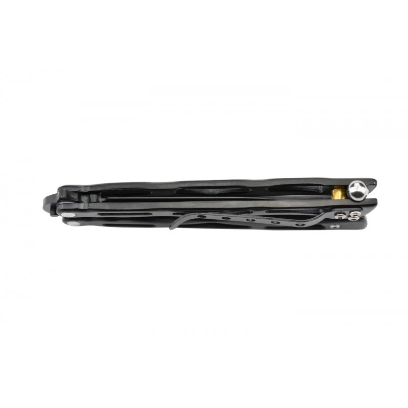 Le Max Knives P38B est un couteau papillon muni d’une fabrication intĂ©grale en acier inoxydable coloris noir. Un balisong qui se veut trĂšs original en raison de son manche façon squelette aux multiples ajours, pour un design dĂ©structurĂ© des plus attrayants. Apportant beaucoup d’Ă©lĂ©gance et de lĂ©gĂšretĂ©, la poignĂ©e noire en inox mesure 105mm de longueur.