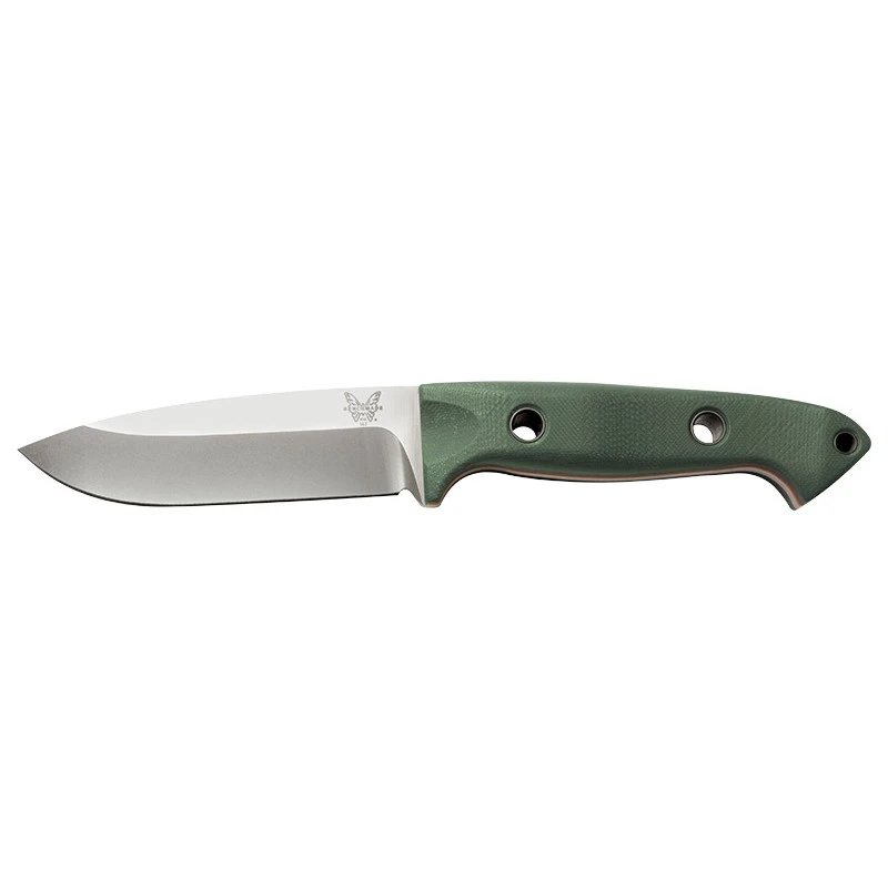 Issu de la Bushcrafter Family, ce poignard Benchmade BN162 est doté d’une lame d’environ 11cm de long, de forme drop point, en acier CPM-S30V (dureté de 58-60HRC). Une lame lisse puissante et tranchante qui vous aidera à survivre lors de vos excursions Outdoor, elle est embellie par le logo Benchmade, à savoir le motif papillon. Possibilité de personnaliser la lame par un texte au choix, au niveau des deux faces. Avec étui en cuir pour une protection élégante et efficace durant les déplacements et mouvements.