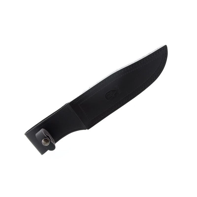 Ce couteau à lame fixe Muela se dote également d’un manche fabriqué en gomme noire. Il offrira à l’utilisateur une prise en main extrêmement confortable, et ce, même en cas d’une utilisation prolongée. Si la gomme est un matériau prisé du fabricant Muela, c’est pour sa surface antidérapante assurant à la main de ne jamais glisser. Il faut aussi savoir que ce matériau a l’avantage de ne pas conduire le froid, très pratique pour les utilisations hivernales. Afin de ne jamais l’abîmer, le poignard Muela Mirage 9301 (lame avec scie au dos) vous sera livré avec son étui de protection adapté. Un étui de qualité signé Muela fabriqué en cuir.